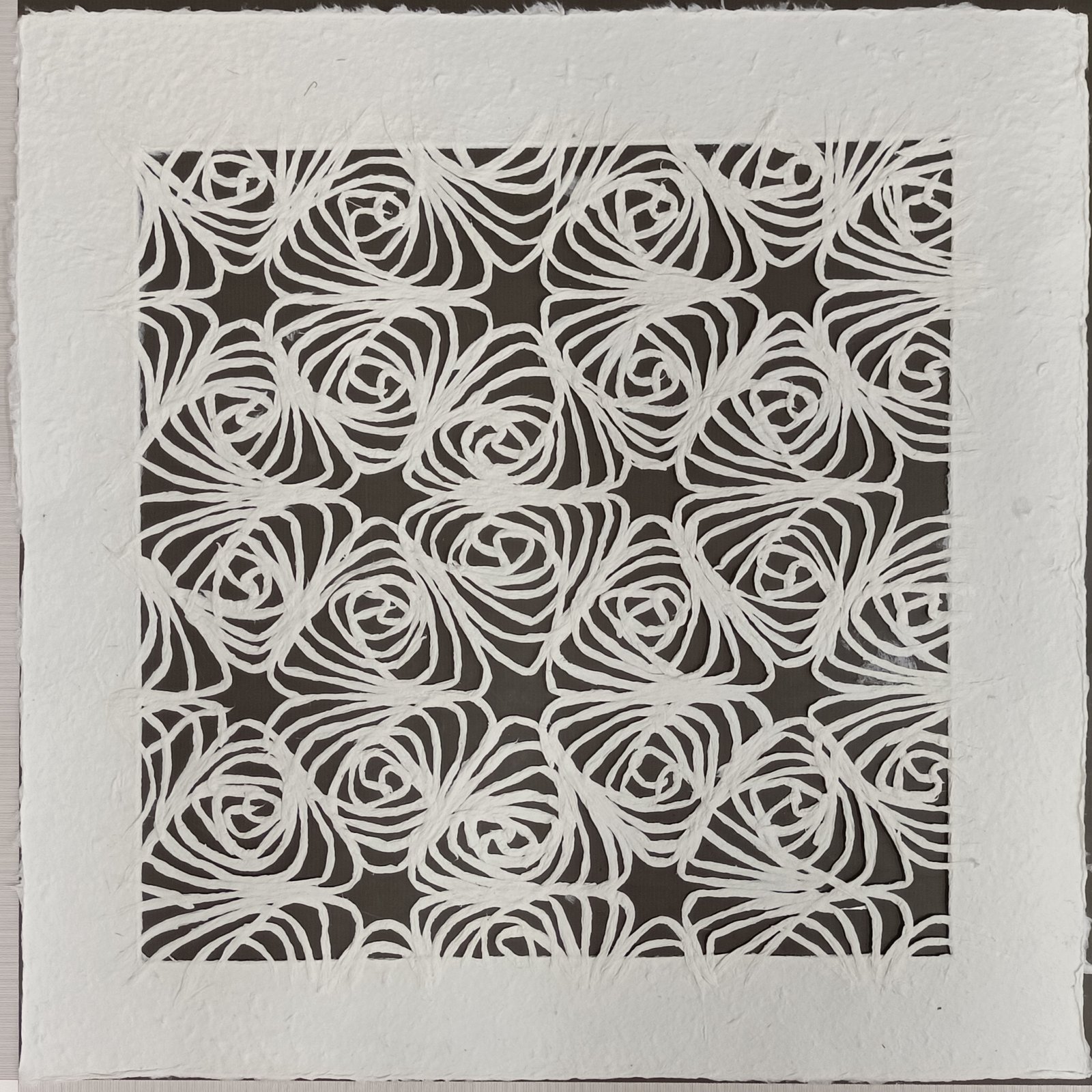 Todo el cuadro gira en torno a la rosa de líneas abstractas del centro, cuyas líneas se entrelazan para formar un compacto dibujo de rosa hueca. En conjunto blanco, exquisito a la par que minimalista.